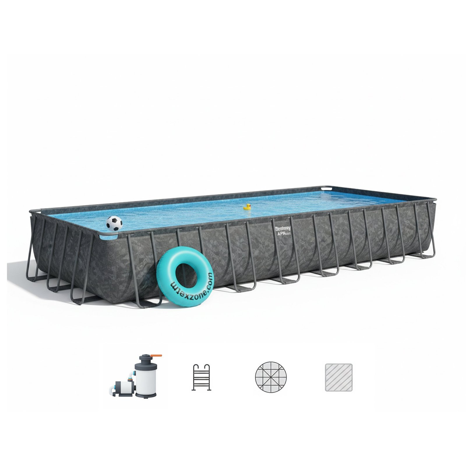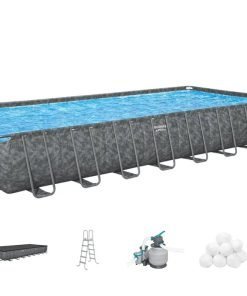 Bestway 561KJ | Size 31.4 x 16.0 x 4.33 Ft | APX Rectangular Metal Frame Portable Ready-Made Swimming Pool