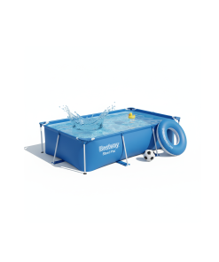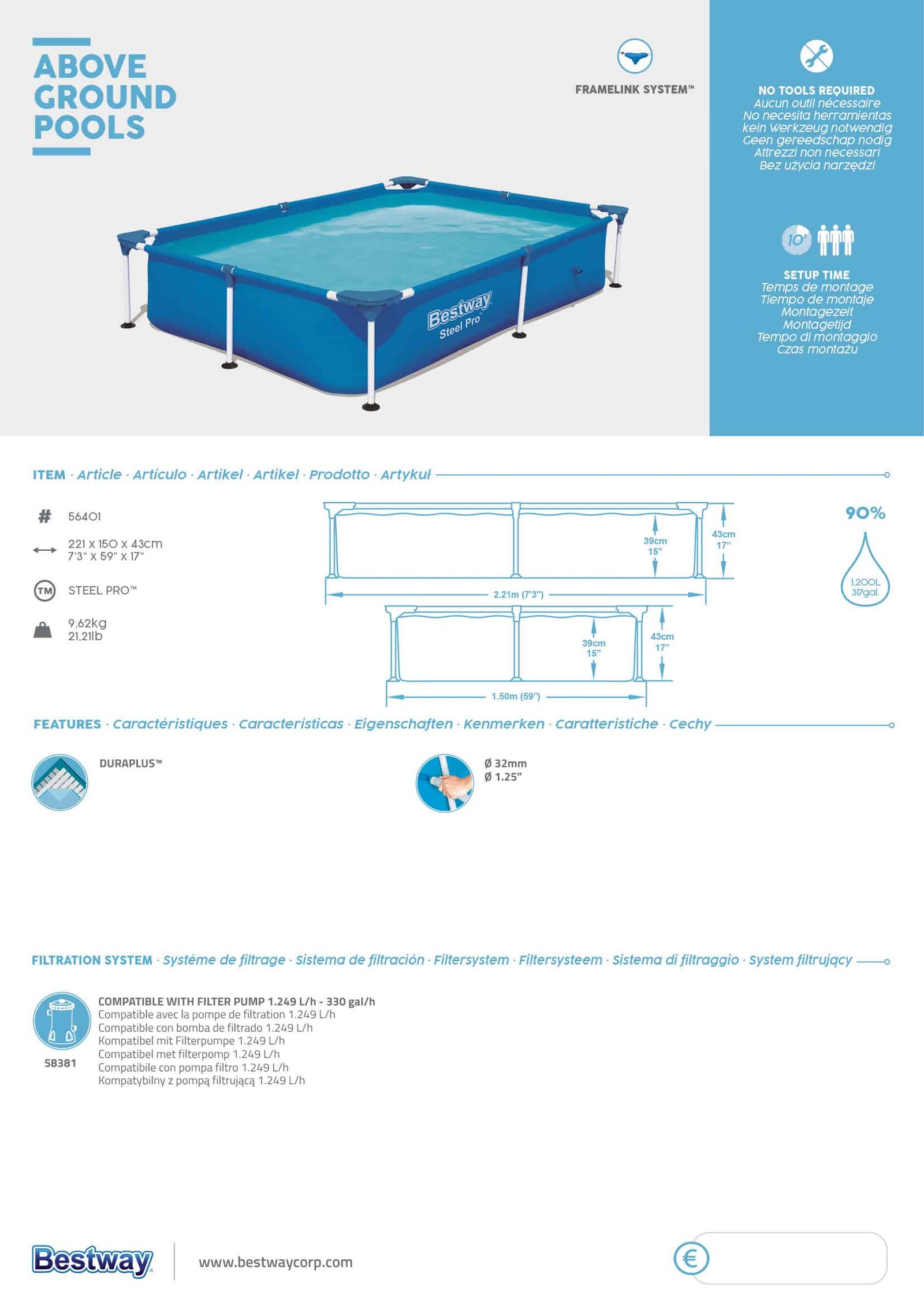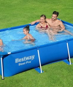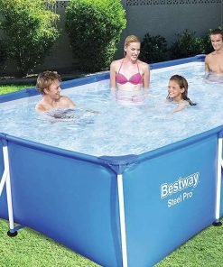 Bestway 56401 | Size 7.3 x 4.9 x 1.30 Ft | Steel Pro Rectangular Metal Frame Portable Above Ground Swimming Pool