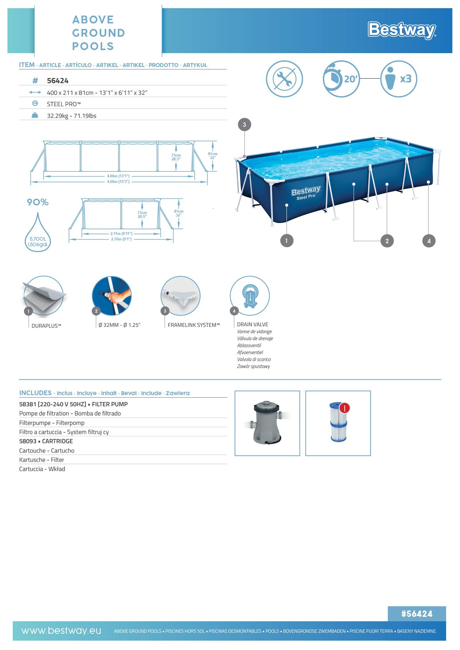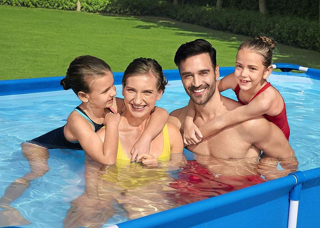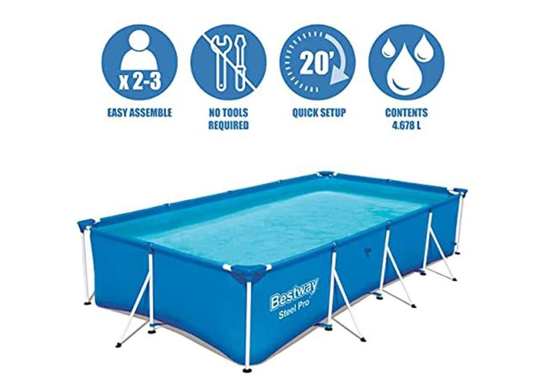 Bestway 56424 | Size 13.1 x 6.11 x 2.60 Ft | Steel Pro Rectangular Metal Frame Portable Ready-Made Swimming Pool