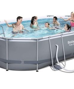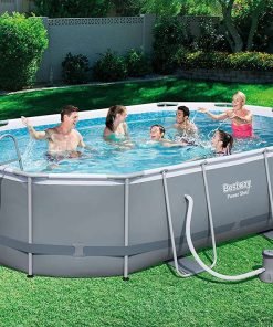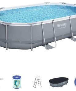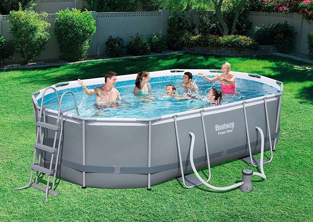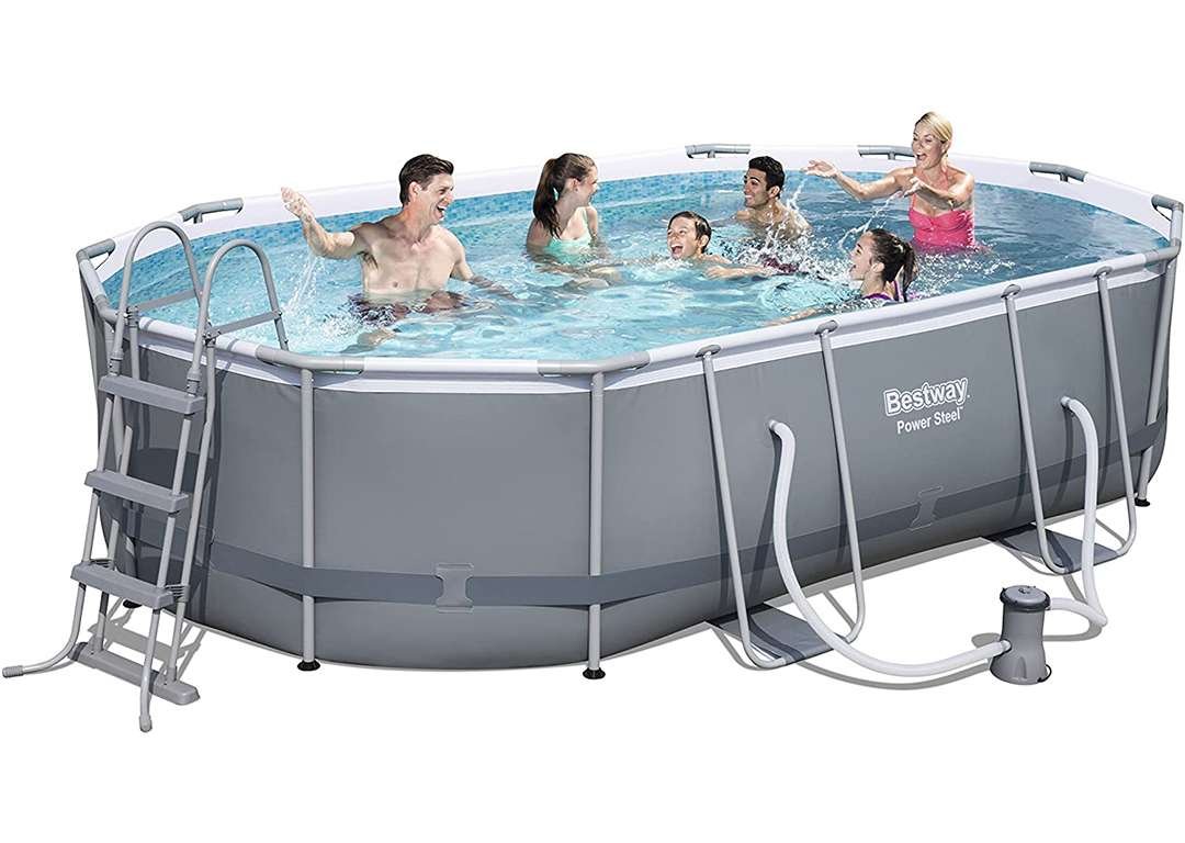 Bestway 56448 | Size 16.0 x 10.0 x 3.50 Ft | Power Steel Oval Metal Frame Portable Ready-Made Swimming Pool