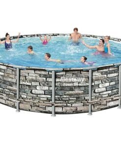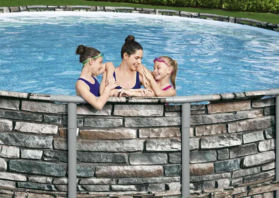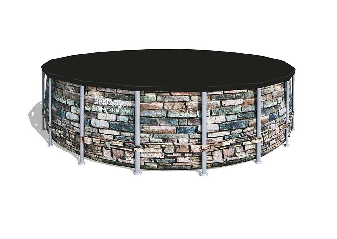 Bestway 56886 | Size 18.0 x 18.0 x 4.33 Ft | Power Steel Round Metal Frame Portable Ready-Made Swimming Pool