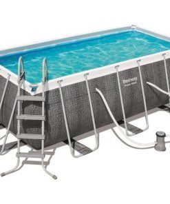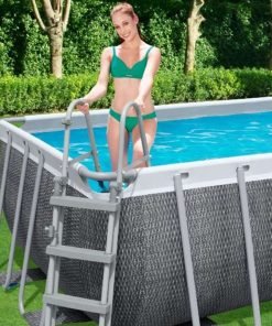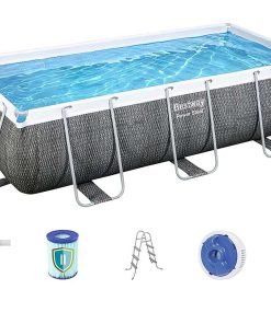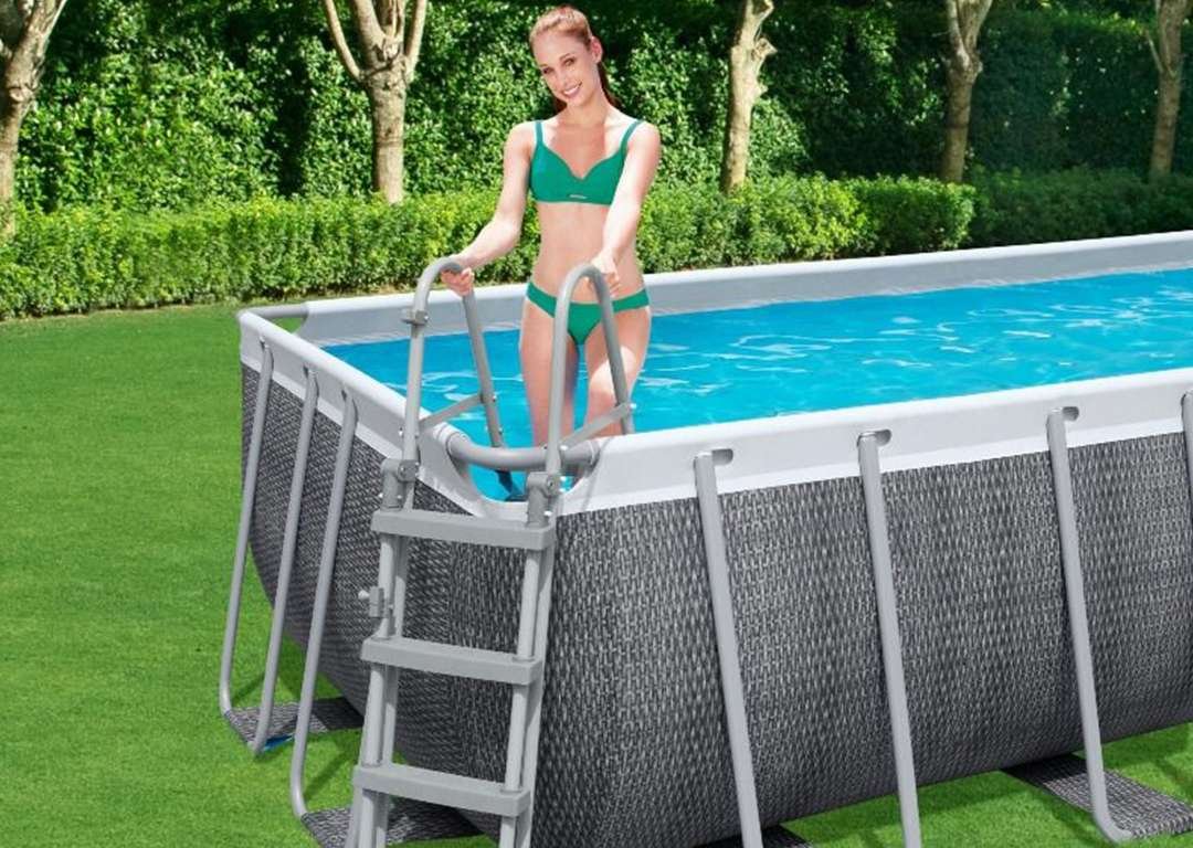 Bestway 56998 | Size 18.0 x 9.0 x 4.00 Ft | Power Steel Rectangular Metal Frame Portable Ready-Made Swimming Pool