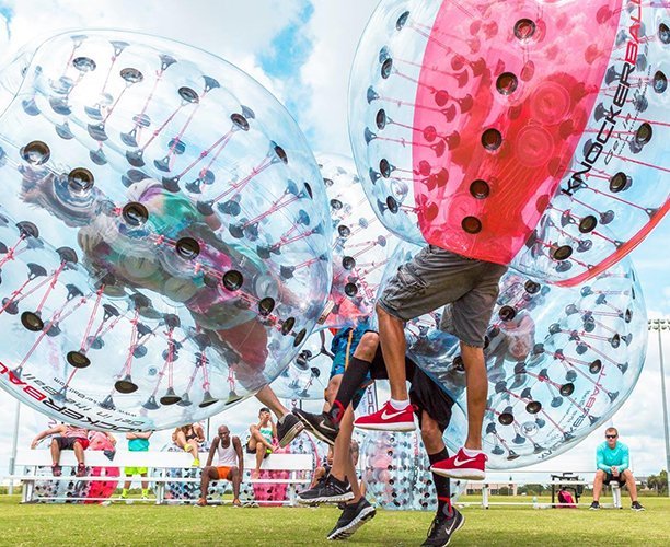 A wonderful attraction for those who like to dive and kick. Body Zorbing Ball- a large transparent ball, equipped with comfortable handles and safety belts for unrestrained fun! Excellent for organizing competitions.