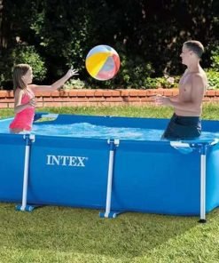 Intex 28271 | Size 8.53 x 5.25 x 2.13 Ft | Rectangular Metal Frame Portable Above Ground Swimming Pool