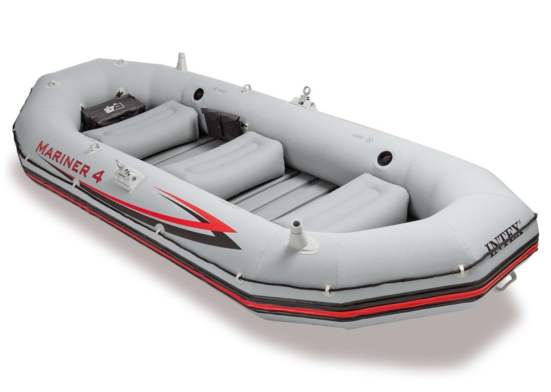 Get the fishing season started right off with the Intex Mariner 4 rigid inflatable boat. The five independent air chambers ensure that you always stay afloat, even if one pricks camera. Included with the double hand pump Quick II inflates the boat in half the time. As an optional upgrade, most customers purchase a motor mount kit, which can support up to a 3 HP motor. Get the fishing season started right off with the Intex Mariner 4 rigid inflatable boat.